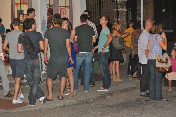 We had plenty of foot traffic from the (conveniently located) Woodward parking lot, and spread our posters and pink balloons up and down Main & Woodward to attract guests. It took a while to figure out how to turn on the building's outside lights once it got dark (something about a switch box in the courtyard?), but overall it was a success!
